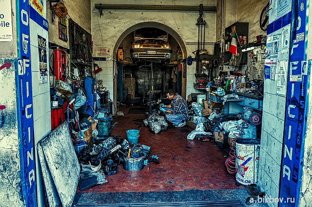 Не только случайные парковки, магазины с их витринами или рестораны с полностью видимой, прозрачной работой кухни функционируют как сцены, открытые взгляду с улицы. Использование самого товара вместо вывесок и сопутствующая драматизация ремесленного труда превращают интерьер многих римских лавок в распахнутый улице экстерьер. Фокус такой сцены совсем не обязательно выстроен в эстетике элегантности. Важнее наглядно показать, что именно можно найти, починить, приобрести, узнать в этом месте. Рабочий хаос, царящий в таких пространствах, демонстрирует одновременно спонтанный и сконструированный процесс мелкого производства. Перенасыщенная материальность лавок, которая открыта обозрению публики – это одновременно мнемонический инструмент, статический акт коммерции и необременительный модус участия в городской жизни.