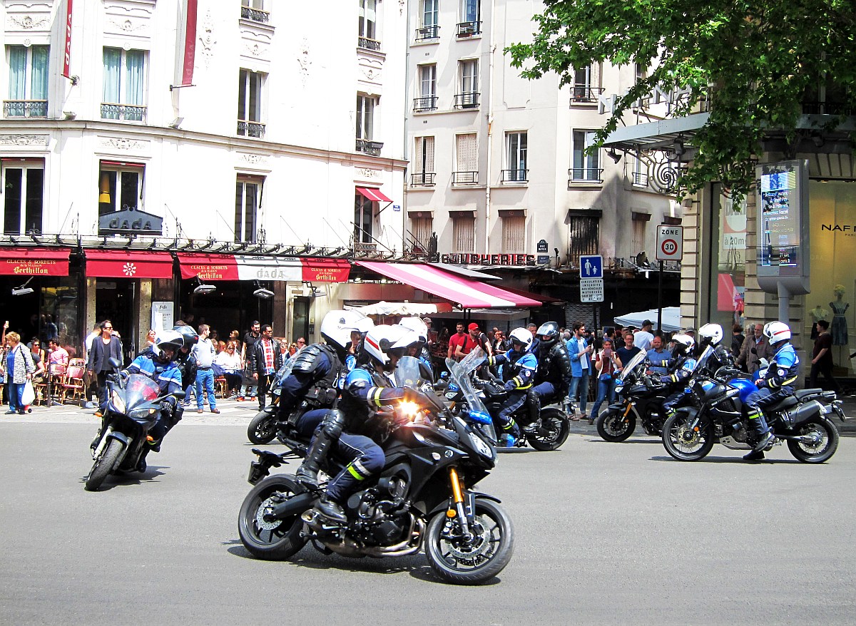 And here I finally arrive to my point. In the Act (Week) XXVIII of the Yellow vest protest, street actions turned back to the very downtown. Luxury districts surrounding Champs-Élysées were flooded… no, not by the angry crowd in yellow vests, but by shockingly massive police in all its forms. Looking around at some streets you might easily imagine yourself a part of a new Star Wars episode. Small groups of protesters who decided this time not to wear yellow vests, were straying in the surroundings chanting “We are here! We are here!” In front of them the weight of the police was simply incommensurate. As usual, the policemen were ordering the passers-by where to go and where to stop, they were “securing” sidewalks simply pushing people with their shields, they were spraying teargas in order to dissolve those small protesting groups, with no concern about children and inhabitants who were numerous in the street in that sunny Saturday noon.