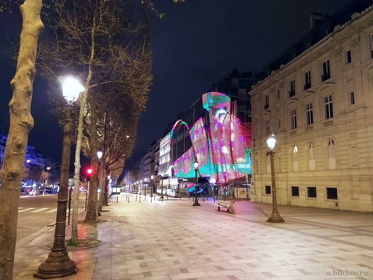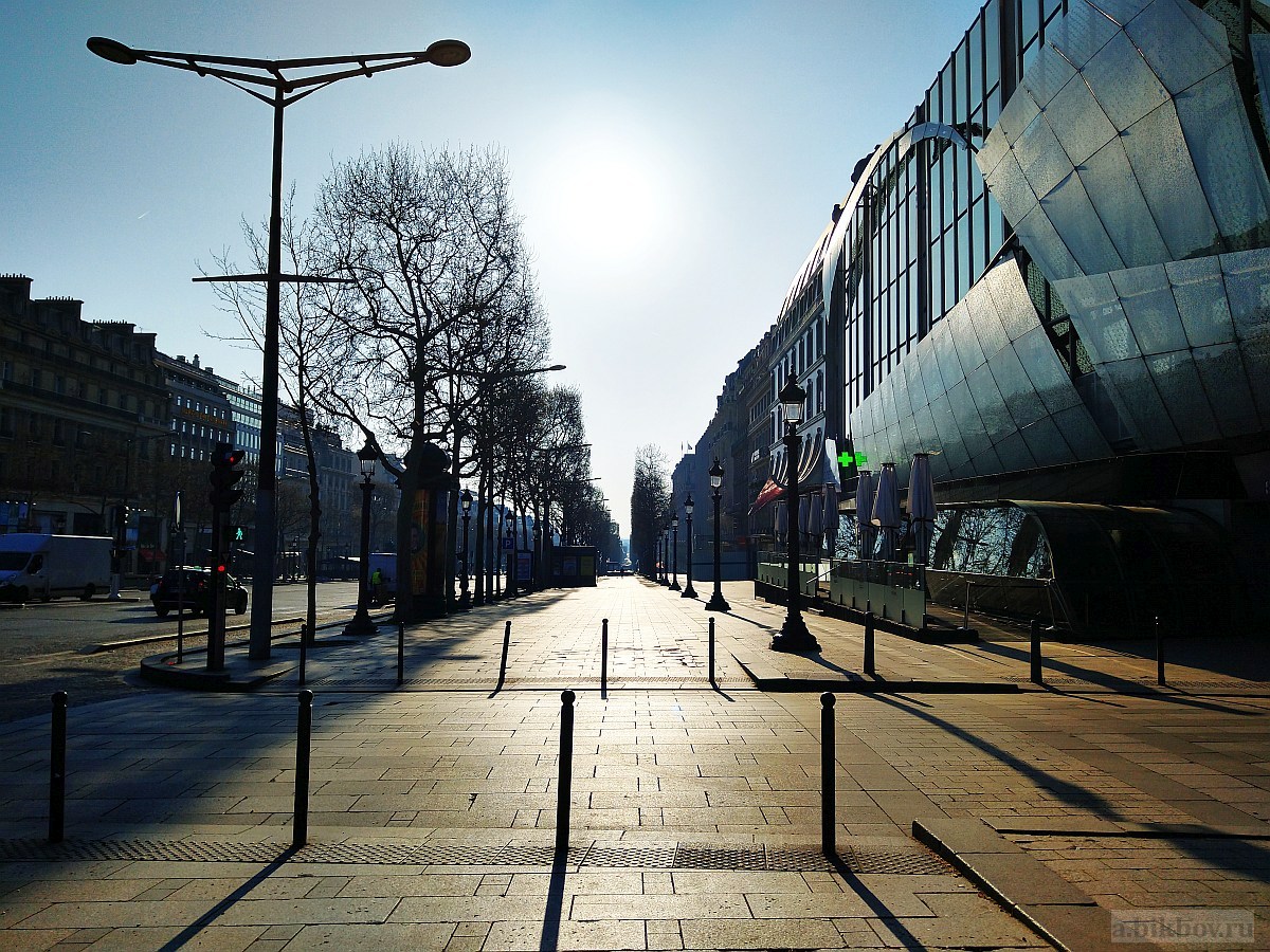 The ever-crowded spots, such as Champs Élysées, are especially empty and silent, even if you are not tempted by comparisons with the previous situation. Few “essential” stores sunk here in the middle of trendy boutiques and souvenir shops, without breaking the monolithic style of closed windows. This is the whole avenue that offers you now a special melancholic luxury, day and night.