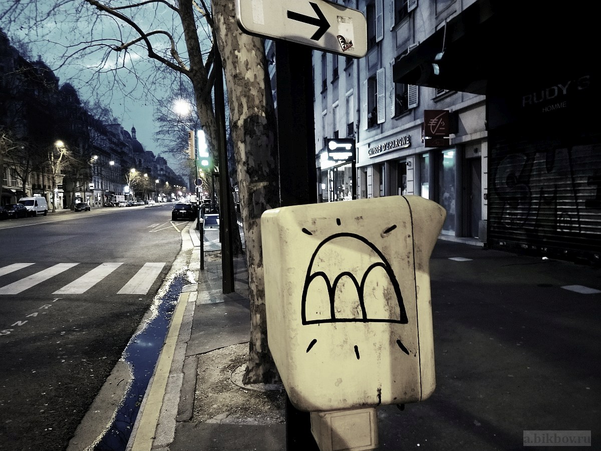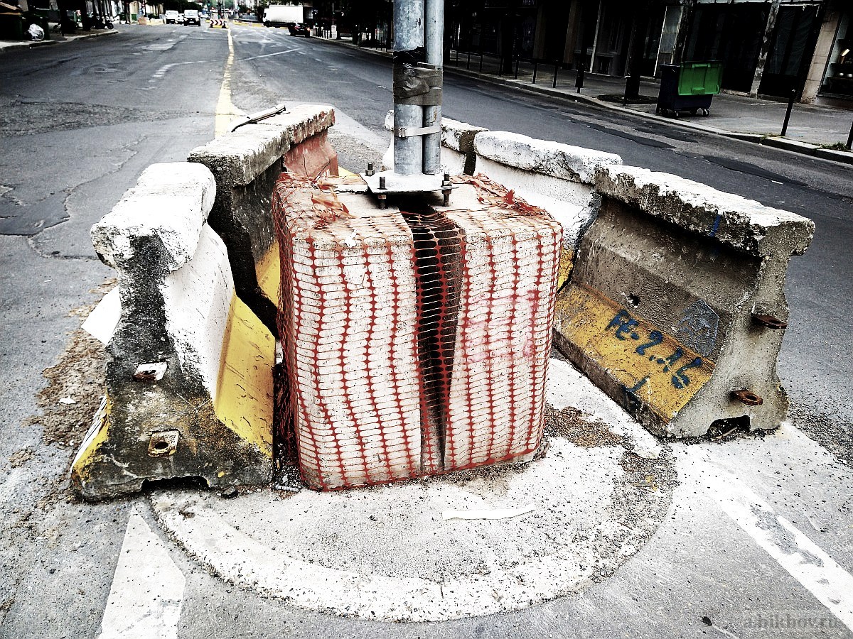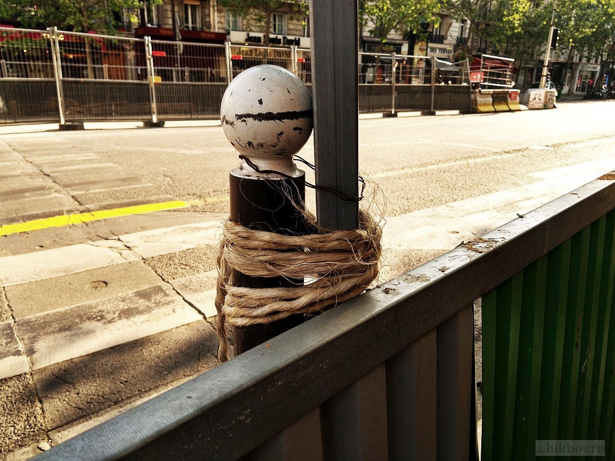 Do deserted urban spaces change their function under lockdown restrictions, when parks are closed, entertainment is scarce, commercial activity is reduced and transport services are modified? For someone who lived the radical disruption of the 1990s in Eastern Europe, the current blow affecting locked capitals is mild. Two ultimate signs of deep urban dive are completely lacking from the COVID-aesthetics: temporary DIY constructions of used tyres and more durable facilities made of sheet iron. The city space is still modified when families regularly walk children outside parks, shopkeepres adapt themselves to logistic impediments, temporary road constructions become half-permanent and lonely consumers are tempted to simulate outing. Superposed with usual modes to cope with poor bike parking and some other inconveniences of large cities, reassignment of places creates a fragile code of an alternative space.