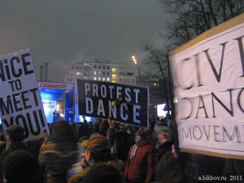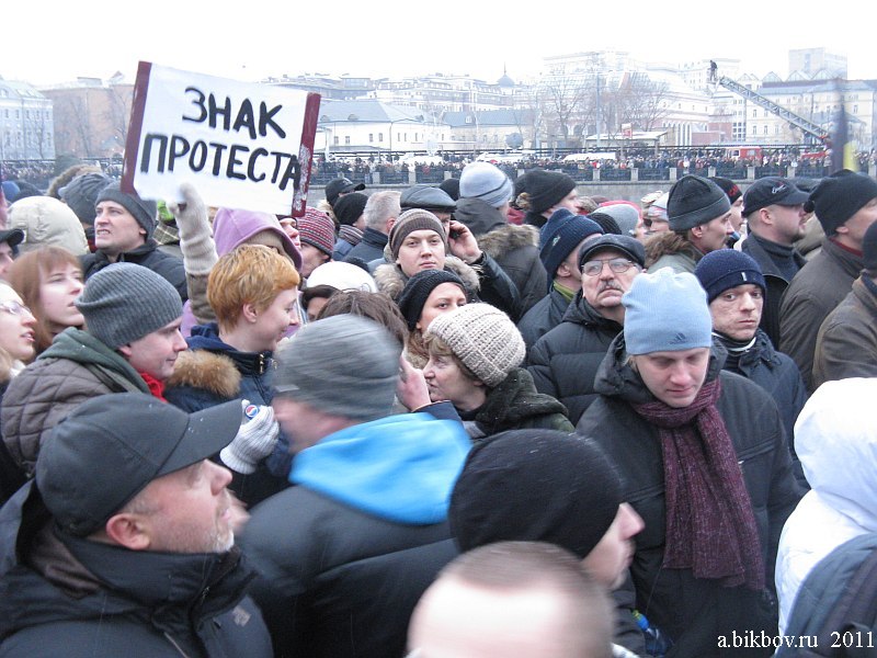Un groupe d’alliés tactiques provenant de l’opposition politique relativement marginalisée (Solidarnost et le Front de gauche) a déposé une demande pour la manif peu avant la date des élections. Ils n’avait aucun pressentiment de la mobilisation spontanée massive et ont demandé, comme d’habitude, une place pour 300 (trois cent) manifestants, proche au Kremlin. Ce qui est arrivé ensuite, le jour même des élections, a dépassé toutes les attentes les plus osées. Le mot d’ordre ” manifestation ” sonné dans l’air, n’a été qu’un prétexte pour milliers de personnes à exprimer le sentiment dominant de méfiance contre le jeu électoral explicitement indigne.